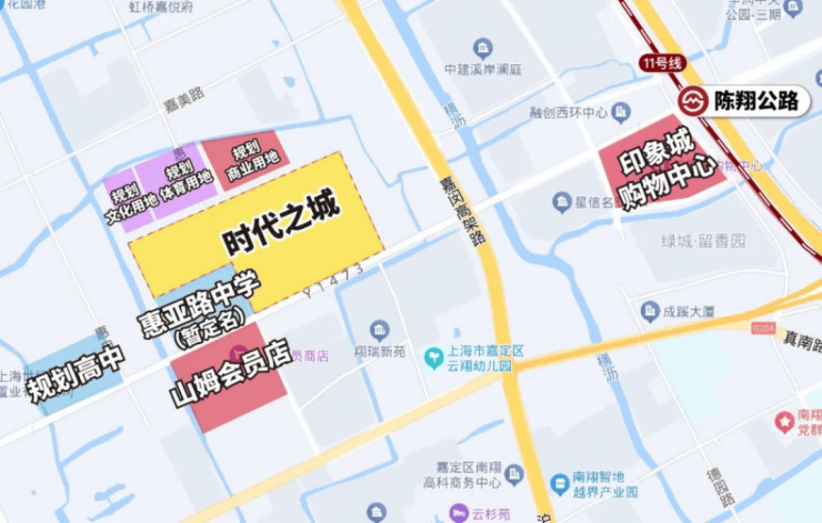 交通上,时代之城所拥有的11号线+嘉闵线双轨通勤,距离地铁11号线陈翔公路站约900米,半小时就能到达徐家汇等市区核心腹地。包括静安寺、徐家汇、徐汇滨江、漕河泾、陆家嘴、新天地都在业主的生活圈内。