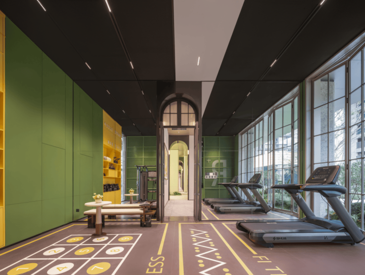 项目的架空层是看下来最让我惊喜的地方,它拥有健身、儿童、欢聚、阅读等7大功能空间,独树一帜——