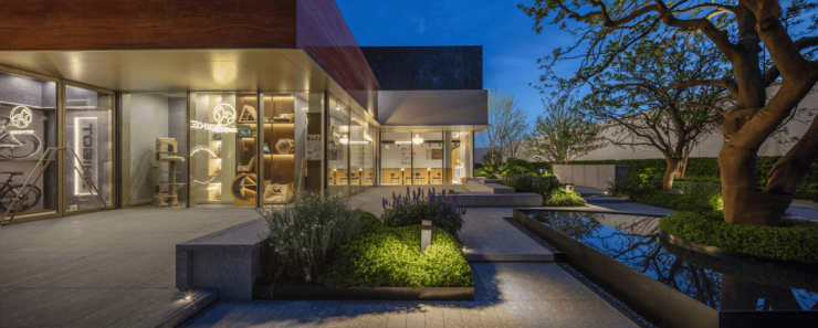 最后讲讲项目的建筑立面,它采用了爱马仕同款博斯普鲁斯绿,这种绿色在中国古文化里面名为黛青色,很好地承接了南翔这个板块的文化底蕴。