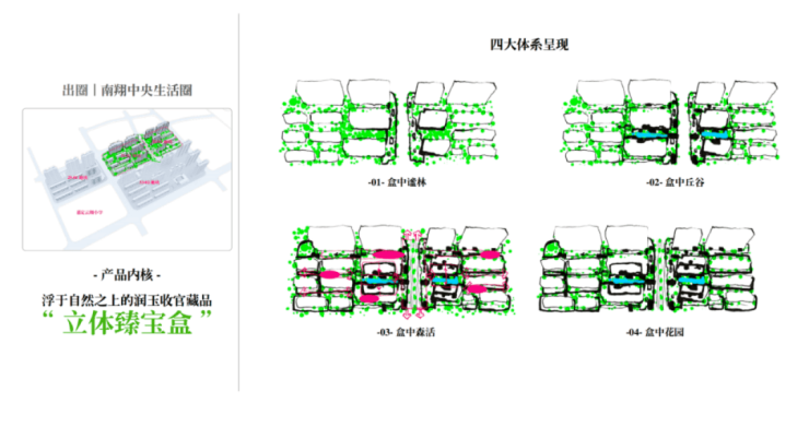 继续往里走,映入眼帘的是二期园林景观——绿野仙踪。它拥有5重立体园林、3大组团、7大森境花园,精心规划了盒中谧林、盒中丘谷、盒中花园、盒中森活等四大园林体系,仿佛一个蓝绿臻宝盒。