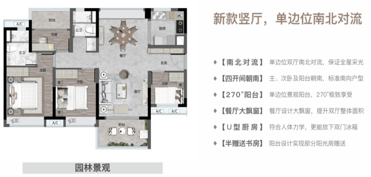 【113㎡四房二厅二卫】双厅南北对流,大飘窗设计,享受极致开阔!