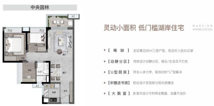 产品:目前在售8栋/9栋尾货,81-113㎡三四房,最后一栋7号楼即将加推,除了81方是北向三房一卫外,其余基本都是南向舒适型,产品档次、居住舒适度以及白云湖景观是这个小区的优势卖点。目前在售均价2.48-2.78/㎡左右,尊循户型越大定价越高户型越小定价越低的原则)该盘采用围合式布局,整体楼间距宽,有两梯四户和两梯六户,居住舒适度在片区内属于比较高。