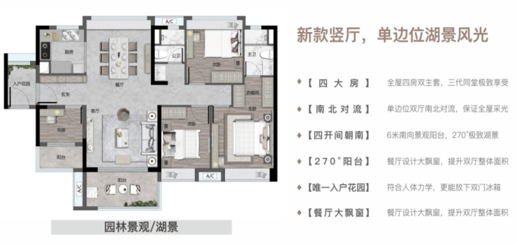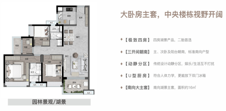【140㎡四房二厅二卫】四房双主套,6米大阳台,望湖极致景观面!!