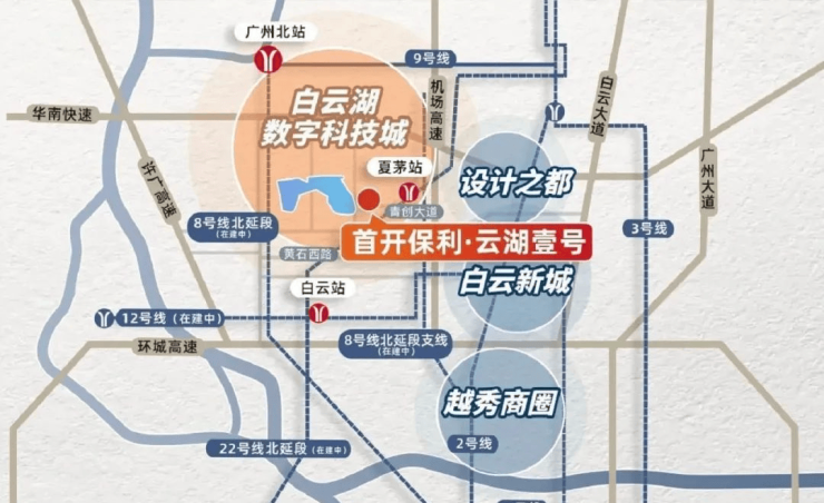 交通:项目距离8号线延长线、22号线夏茅站900米(施工中),同时还规划有24号线待建,小区沿广花路、机场路直走到新市、白云新城等成熟主城区仅仅15-20分钟车程,交通非常便捷。
