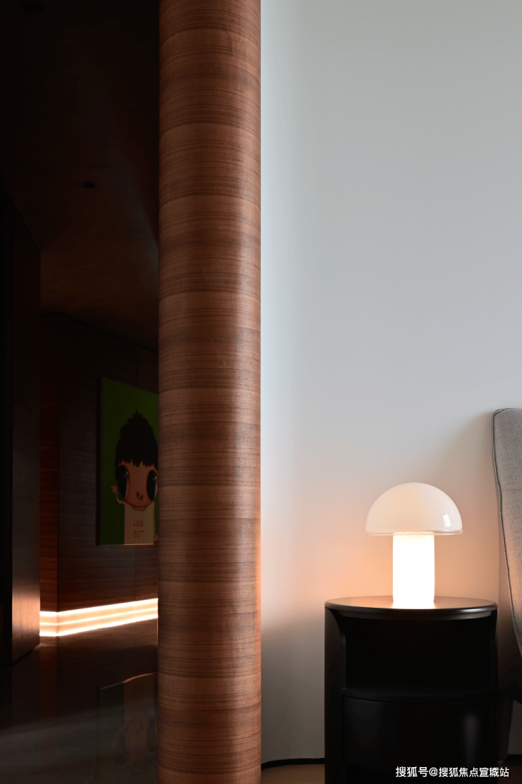 由客厅内行的廊道,通向私密的寝居空间,木与岩石的相互碰撞,寻求一个冷暖的平衡.