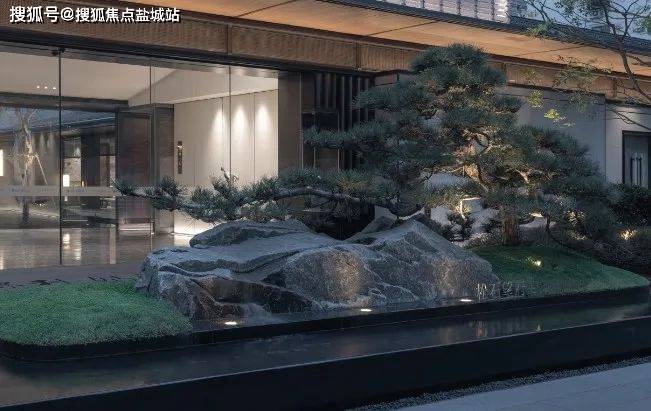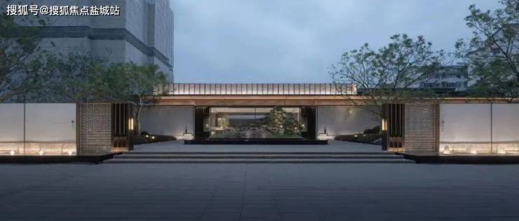 从之前公布的效果图来看,项目的门头采用了古铜铝板+石材打造,融入了白墙灰瓦、劲松流水等江南园林景观元素。