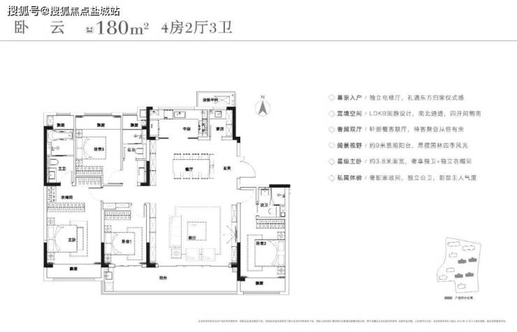 在优越的空间利用率面前,其它闪光点都成了锦上添花。但基本上市场大平层必备的要素,ta都有——标配大横厅、标配洄游结构、标配动静分区、真南北通透等等。