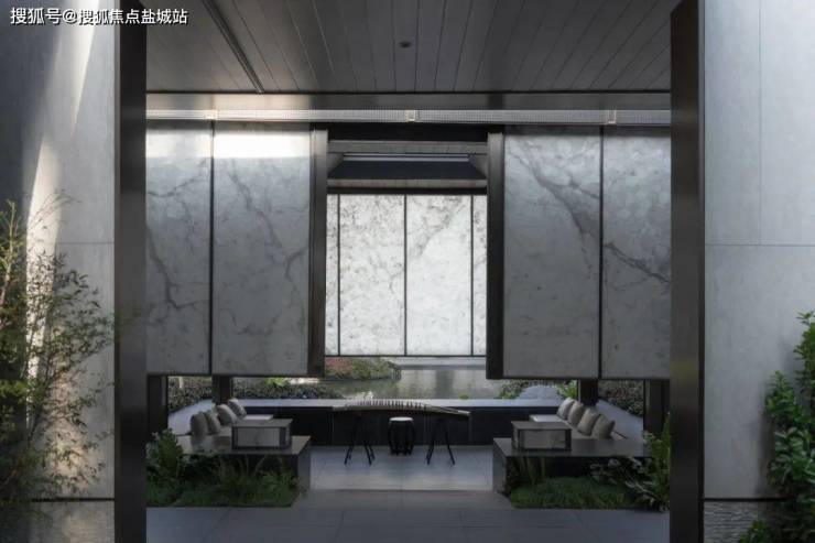 基于场地周界三面均为老旧住宅区,为了延续城市构想,在老旧城市界面中提升产品形象,景观希望用设计保留古典园林中的东方韵味,取法留园师法艺圃,再现东方门庭风度,力求打造一处藏于城区中可见山水、可见四时的东方藏品大宅。