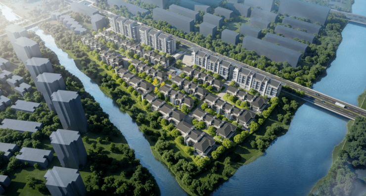 宋时风雅今时院,城央纯墅双水环屿仅145席建面约216-560㎡的天地院境,其中规划有82席216-308㎡奢境叠拼和63席 296-560㎡宋意合院。
