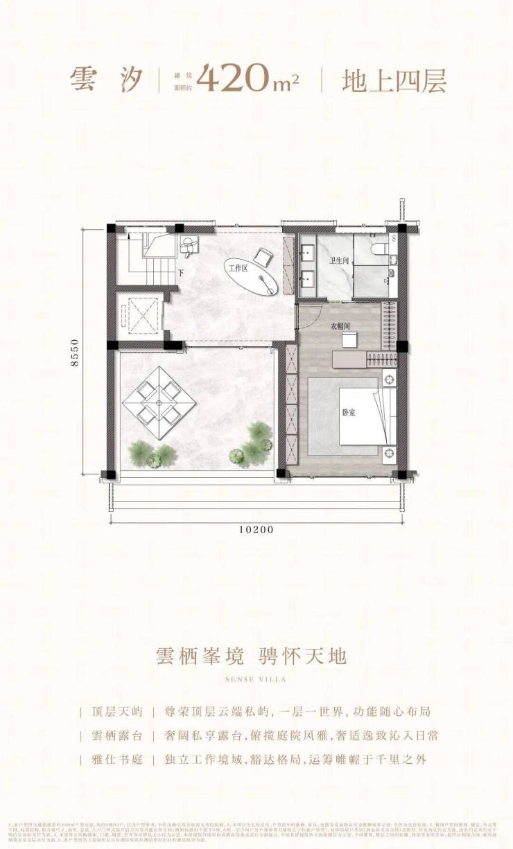叠墅纵向空间上,功能立体分层、动静分离,上下叠皆拥有独立庭院,且下叠地面首层挑高至约3.55米,中上叠会客层亦挑高至约3.45米,全系户型皆奢享挑高约7.2米居下空间。