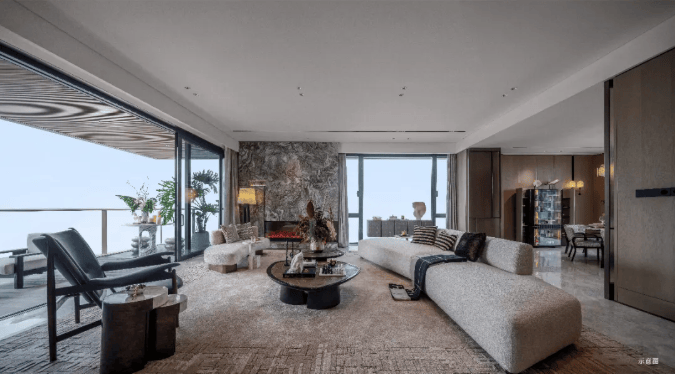 横向空间维度约7米奢阔客厅,搭配约9.6-10.6米南向面宽,让南向采光、观景得以最大化,家族聚会、社交筵席都能拥有恢弘从容气度。