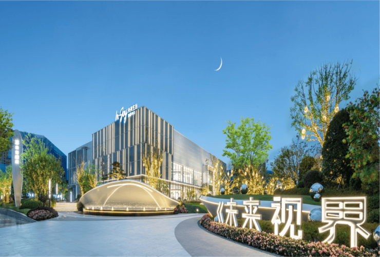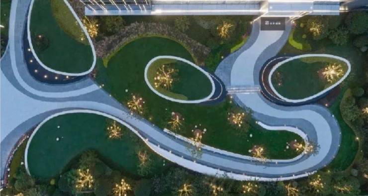 在忙碌的生活中,我们总渴望寻得一处可以放松身心、尽情躺平的地方,而眼前的这方天地,恰如其分的满足了这份期许。示范区延续「万物互联,未来之歌」的设计理念,将城市环境与自然景观通过层层柔美圆润的曲线,勾勒出山水峡谷般的有机形态,打造出极具体验感的景观展示面。
