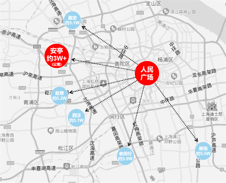与人民广场直线相隔二十五公里的安亭,价格优势不言而喻。