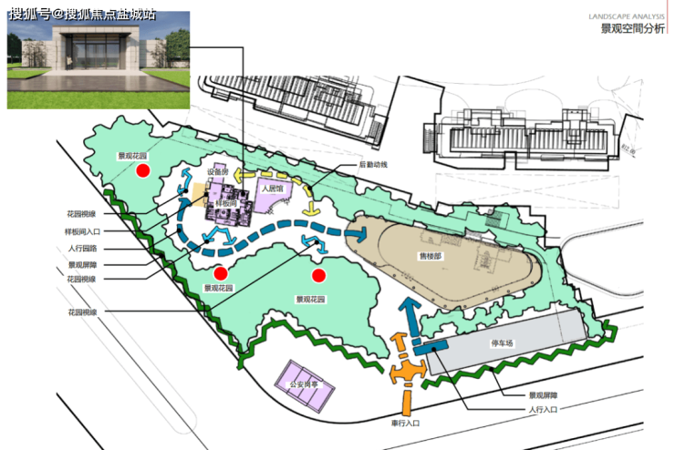 景觀設計意在打造一個體驗式的生活館,以多重空間放大園區感受,打造“場景化”景觀,利用不同的景觀元素提升行者與園區的互動性,增加園區的體驗感。