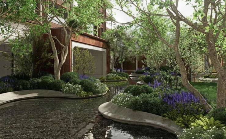 项目还 将印象派艺术融⼊生活 ,将莫奈的《睡莲》、雷诺阿的《花园里的女人》这样的印象派画作融入景观了理念中,打造出多主题的印象派花园。