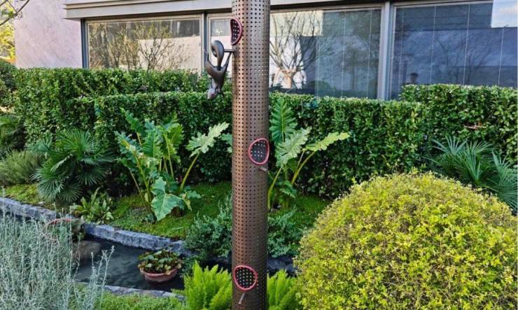 小溪边隐藏着绿城景观的超级IP—— 春知园,品种繁多的植物密布其中,还有喂鸟支架,供孩子们观察自然。