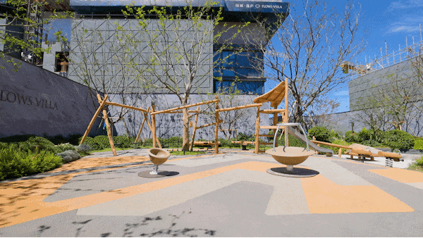 在名为“丛林奇遇记”的 儿童游乐区选用的是丹麦顶奢品牌KOMPAN(康攀)的设施,滑梯、攀爬网、秋千、旋转木马、旋转碗、摇摇乐、跷跷板......一应俱全。