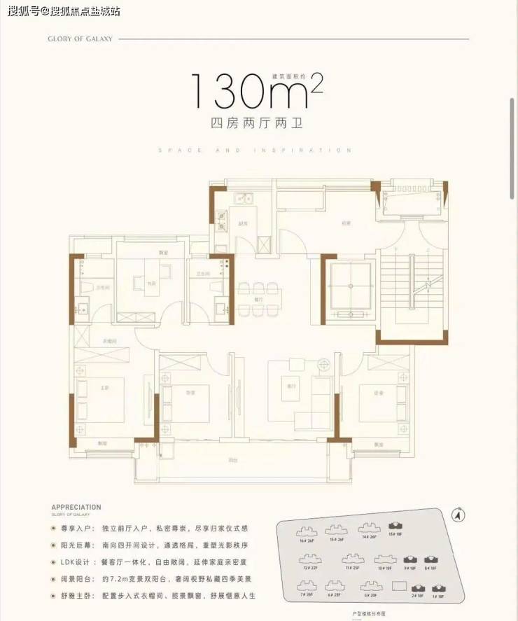 小高层上建面约130㎡的户型,做到了一梯一户,配有了可自由安排的电梯厅,隐私性进一步提升。