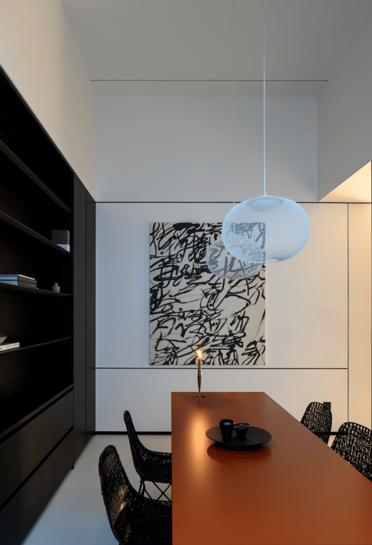 整个空间以静、雅、柔传达着家的精气神儿,黑白的交错,棱角的柔和,都是家的本色,都是极简的象征。