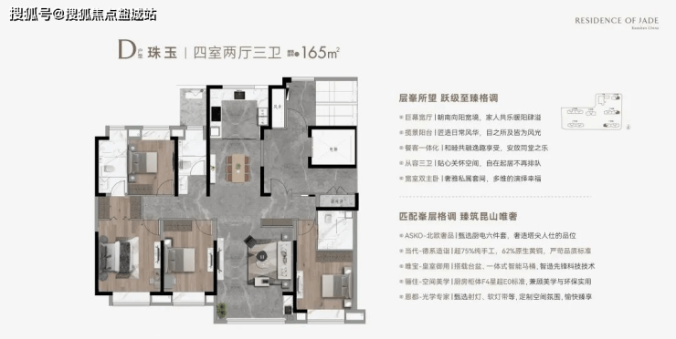 D户型 珠玉丨四室两厅三卫 建筑面积约165m²