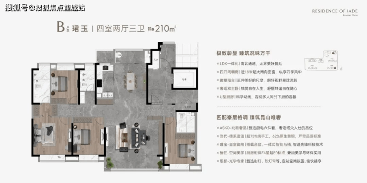 B户型 珺玉丨四室两厅三卫 建筑面积约210m²