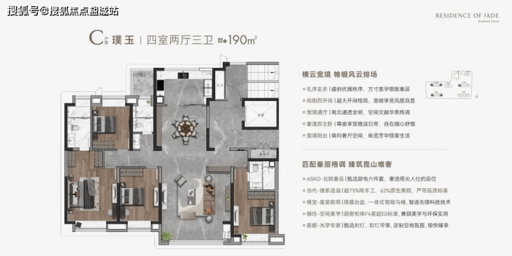 C户型 璞玉丨四室两厅三卫 建筑面积约190m²