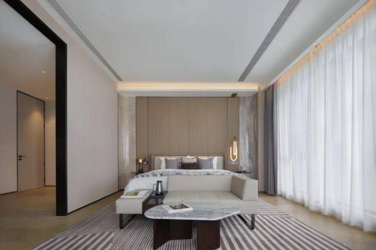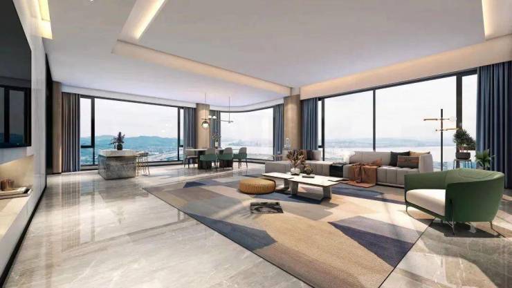 全屋智能家居系统,高级烤漆木饰面+全景落地窗,打造“低密大平层”标杆。