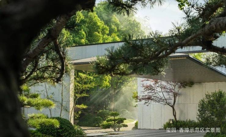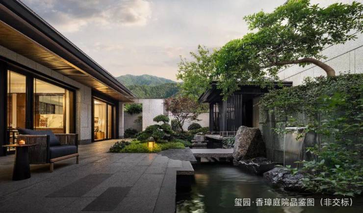 玺园·香璋景观由绿城环境宋淑华设计,以浙派园林风格为基底,汲取《溪山行旅图》《西园雅集图》灵感,以宋代长流涧串联整个景观轴线,并以绿植、景石等风景要素点缀,给人“如在画中游”的情景体验。