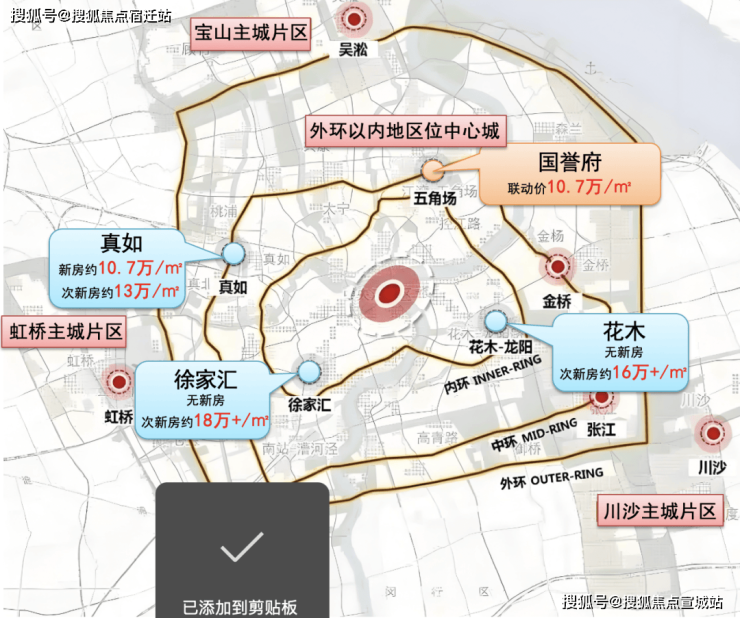 徐家汇、花木板块次新房价格普遍在16万+/㎡,真如的新房价格逼近11万/㎡,次新房价格普遍在13万+/㎡,而五角场的纯新盘“国誉府”,联动价仅有10.7万/㎡,绝对的价格洼地!