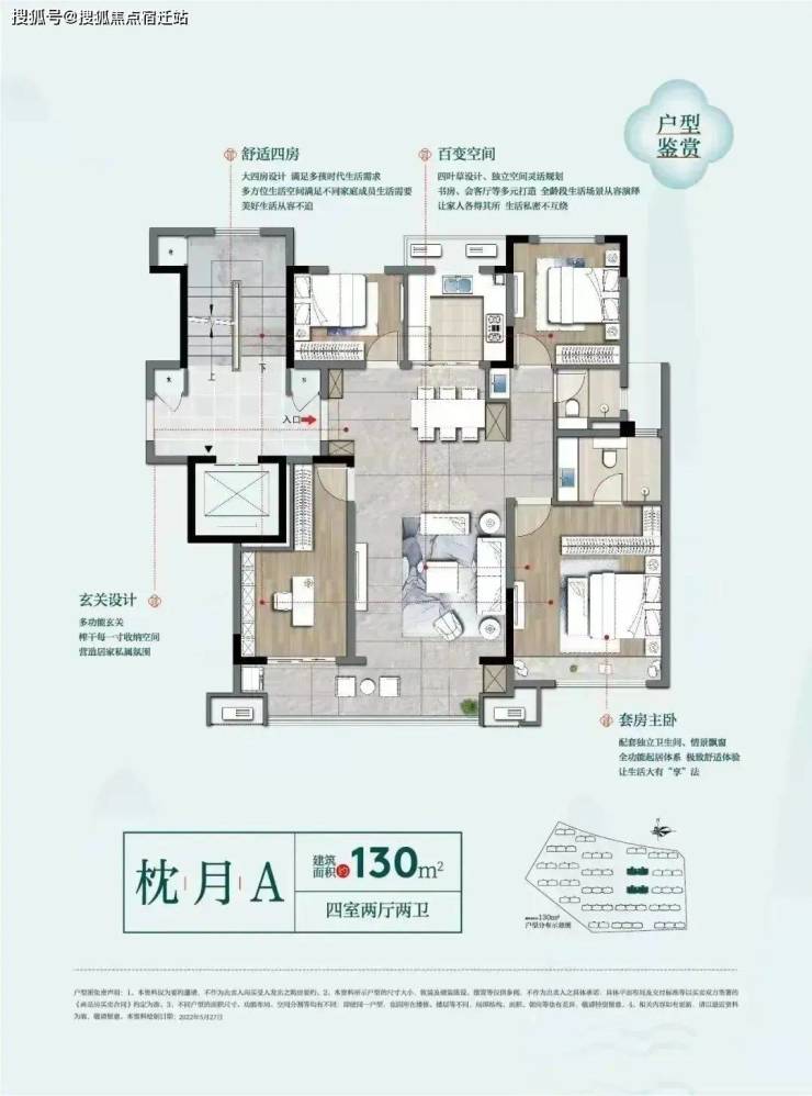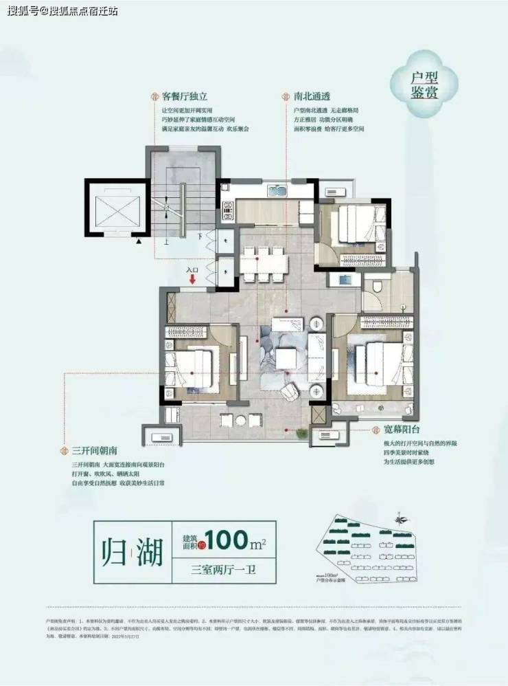 目前保利碧桂园悦府在售户型建面约100-130㎡,为标准的飞机户型,中间为公共区域,卧室布置在三个角落。