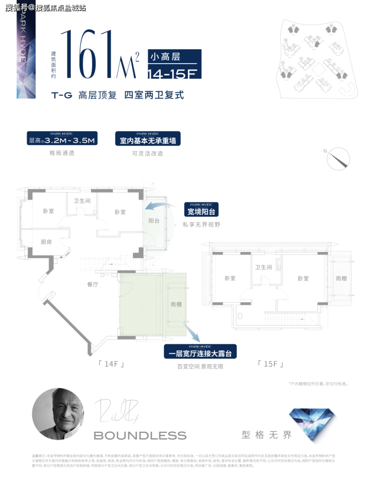 161高层复式户型,四室二卫,套总价1007-1034万(套均总价1021万);