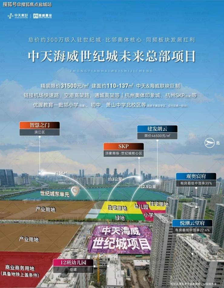 钱江世纪城新宁路与扬帆路,建筑面积:110、125、137㎡,精装限价:31500元/㎡(装修3500元/㎡),楼层:22-26层,层高:3米,套数:363套,绿化率:35%,项目特点:约6000方中心花园景观+无界泳池+主题架空层+星级酒店归家落客区+月映回廊!