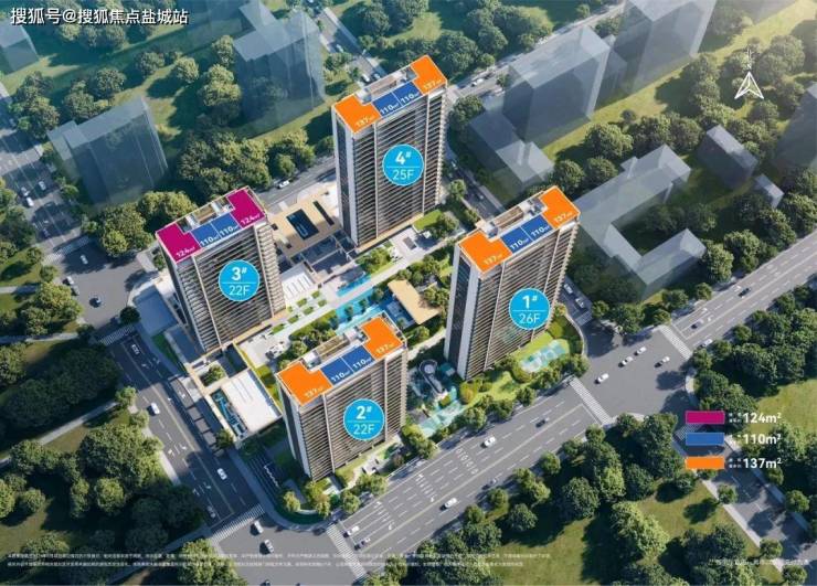 1#楼与北面4#楼的楼间距达到了约53米,四栋楼之间,是以「度假池」为核心的「悬浮水镜」1#楼的南面,则营造有约15米南向景观花园,更重要的是,整个南面视野无遮挡,世纪城的天际线,将和这座城市的璀璨,如同一帧帧被定格的画面,