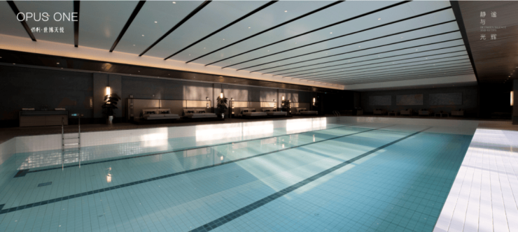 内部配置25*11m半标恒温泳池,泳池配设 4 条泳道,还有约180㎡私宴厅,酒窖、会客厅及健身房等功能。会所中定制打造了以“文明之海、时间之轮、永恒之光”为主题的艺术品。