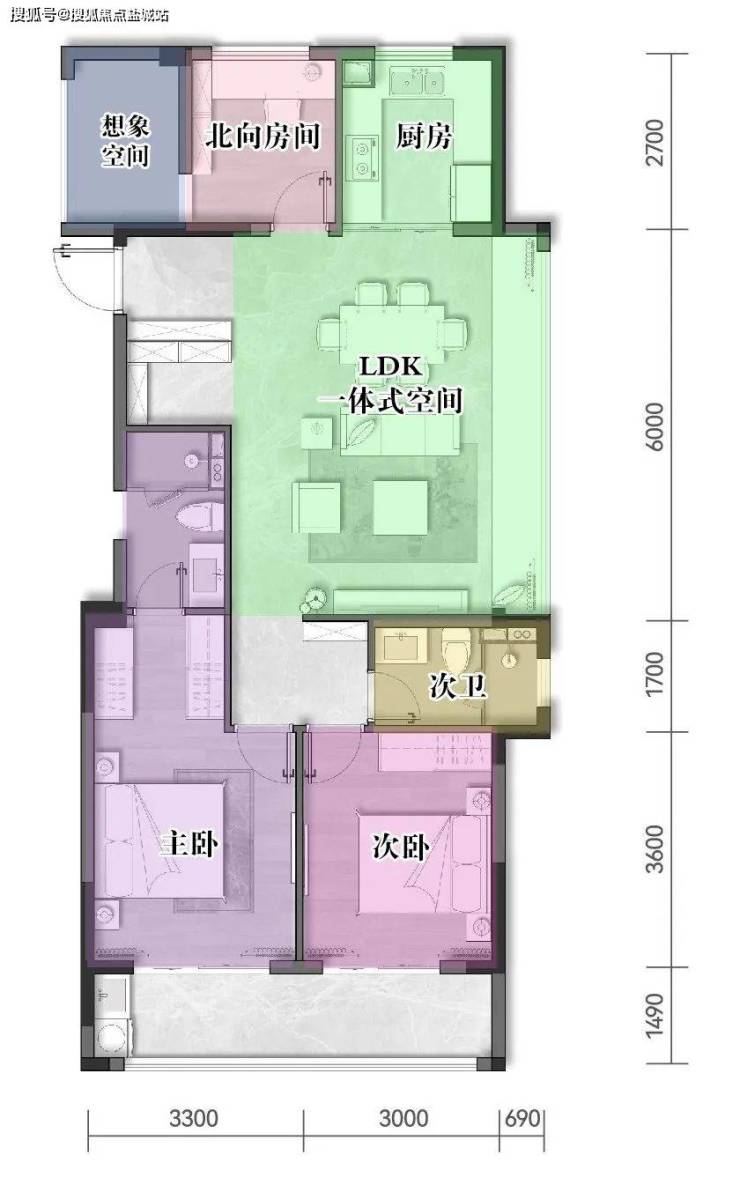 建面约109㎡的户型:与南向面宽等长的双开间阳台,轻松实现主、次卧的阳光平权;一体式LDK+约6米飘窗台,空间游刃有余、张力十足;独立储蓄空间是“家的收纳师”,让生活秩序井然、得心应手。
