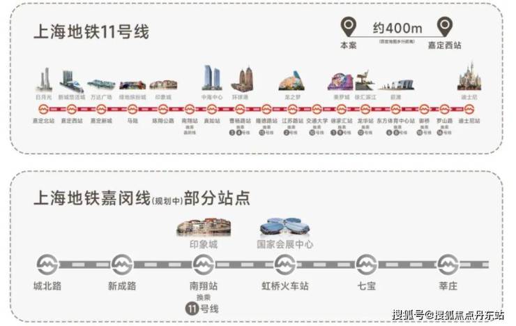 交通配套方面:项目距离轨道交通11号线嘉定西站直线400米左右,附近还有嘉定客运中心,交通便捷。另外,项目临近沪宜公路、距离沈海高速约1.5公里,上海绕城高速约3.5公里,自驾出行也十分便捷。