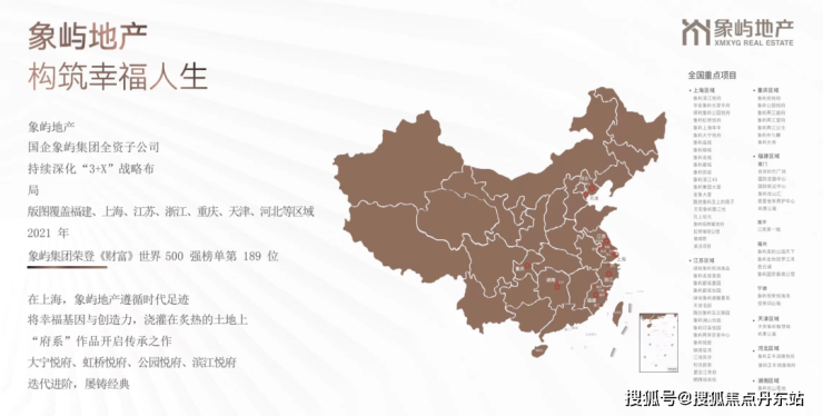 象屿地产集团,是财富世界500强、大型国企象屿集团的全资子公司。多年来,公司荣获“中国房地产百强企业”、“中国房地产开发企业稳健经营10强”、“中国华东房地产公司品牌价值TOP10”等多项荣誉,打造了象屿大宁悦府、象屿滨江悦府、蟠龙府等高品质项目,口碑受到社会的广泛认可。