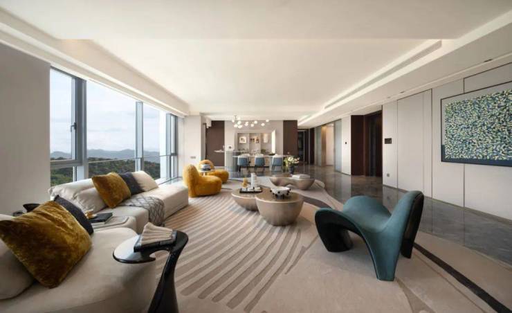 作为西投银泰城上仅此的300㎡平层宽境,映萃就如同这艘“游轮”上的头等客舱。以8号楼“潮印”样板间为例,步入厅堂的第一刻,你就会被它的非凡视野所惊艳:约24米南向大面宽,将苍翠浮山纳为生活的注脚。