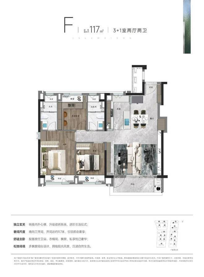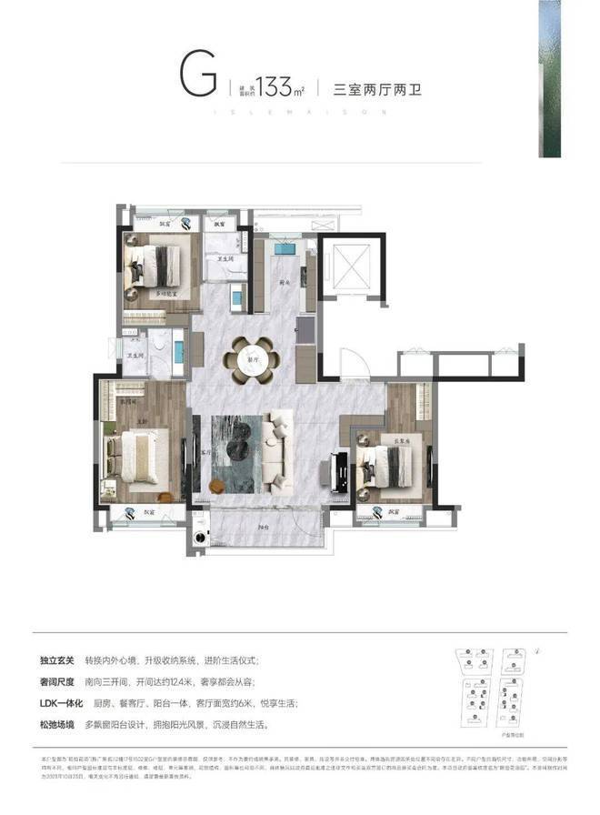 除此之外,3房2卫多飘窗的设计更是让这个户型的视野延展更上一层楼。