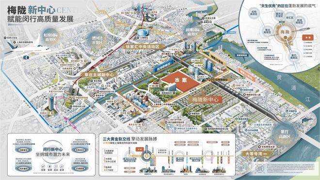 梅陇板块占据虹桥枢纽和南部科创中心结合点的中心区位,是上海西南重要门户区域。总体量约117.58万方,周边聚焦3大国家级产业区、5大科创中心、12大科创园等百亿科创资源,以及城市之门双子星,将打造宜居、宜商、宜业的城市新名片!作为梅陇新中心核心启动区的住宅组成部分,本项目未来将塑造城市美好人居蓝本。