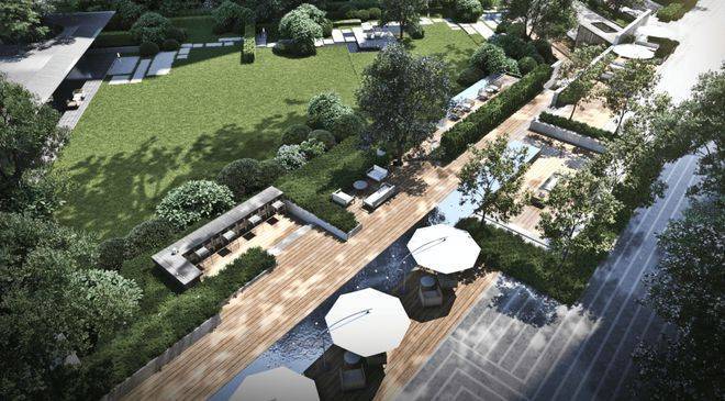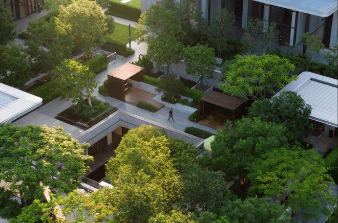 运用光线、水、植物等元素,并萃取高端酒店设计,呈现更多自然、舒适且松弛的多元生活状态,在社区内打造静心庭院、水榭林间、微风草坪等松弛雅奢的都市谧境。
