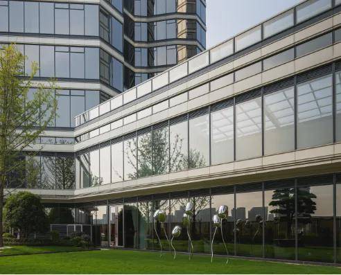 园区采用“围合式”布局,融合“钱塘江”水韵灵感,映衬周围自然生态,配合全冠移植的特色名贵树种,营造出环景畅谈式“艺术公园”。
