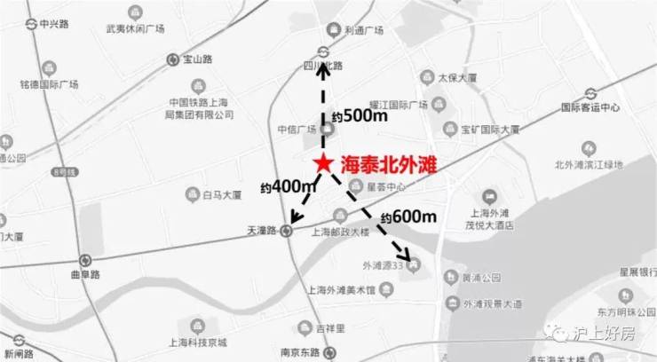 「海泰北外滩」位于虹口区四川北路塘沽路(江西北路以东,塘沽路以南,四川北路以西和规划七浦路以北),距离外滩源仅有600米。