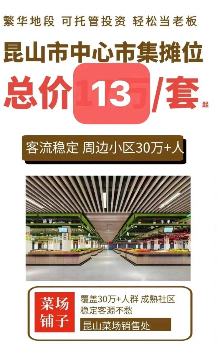 🔥 总价13万,年租金3万,抢昆山核心区域 吸金小摊位~年收益15%的产权商铺,等你来当房东收租……