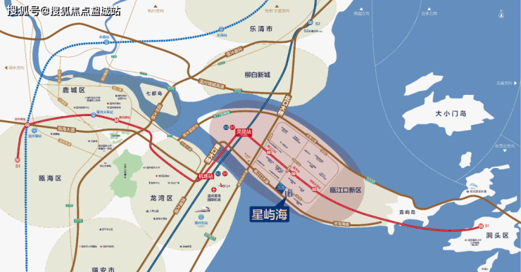星屿海项目位于瓯江口新区南部生活区的核心地段瓯江口新区未来将北通乐清、南连龙湾、瑞安、主城区、东接洞头度假区,是温州东拓新中心;