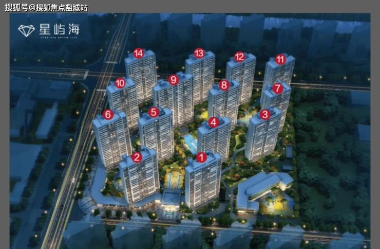 【项目概况】:星屿海项目占地约76.98亩,总建筑面积约21万方,共14幢高层,总户数1389套。