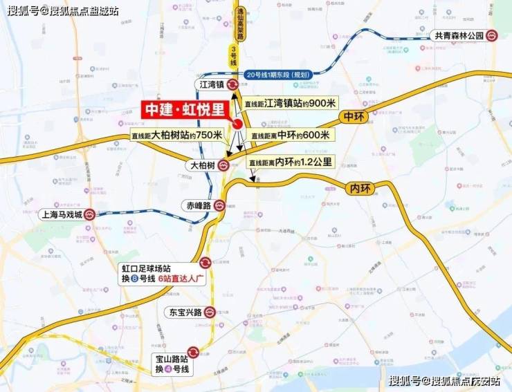 中建·虹悦里直线距离3号线大柏树站约750米,直线距离江湾镇站均约900米,步行可及。3号线也是多年才出一个轨交房。