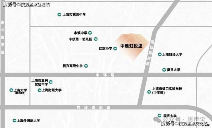 项目是真正中环旁新盘,直线距离中环仅约600米;同时这一段中环和内环紧挨着,因此中建·虹悦里直线内环也仅约1.2公里;此外,东侧还邻近逸仙高架路。