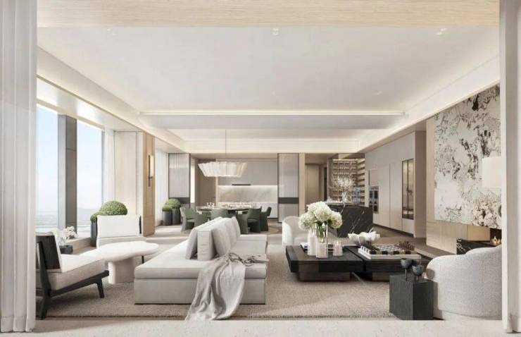 俯瞰窗外即是海量商业群像共绘的高定奢尚生活场——距离SKP仅900米,窗景就是杭州「海拔」最高的城市封面,比邻奥体印象城、Costco等商业中心,望朝中心、博地中心等高端写字楼分布在侧,以及自带5000方精致商业街区,繁华永不落幕。
