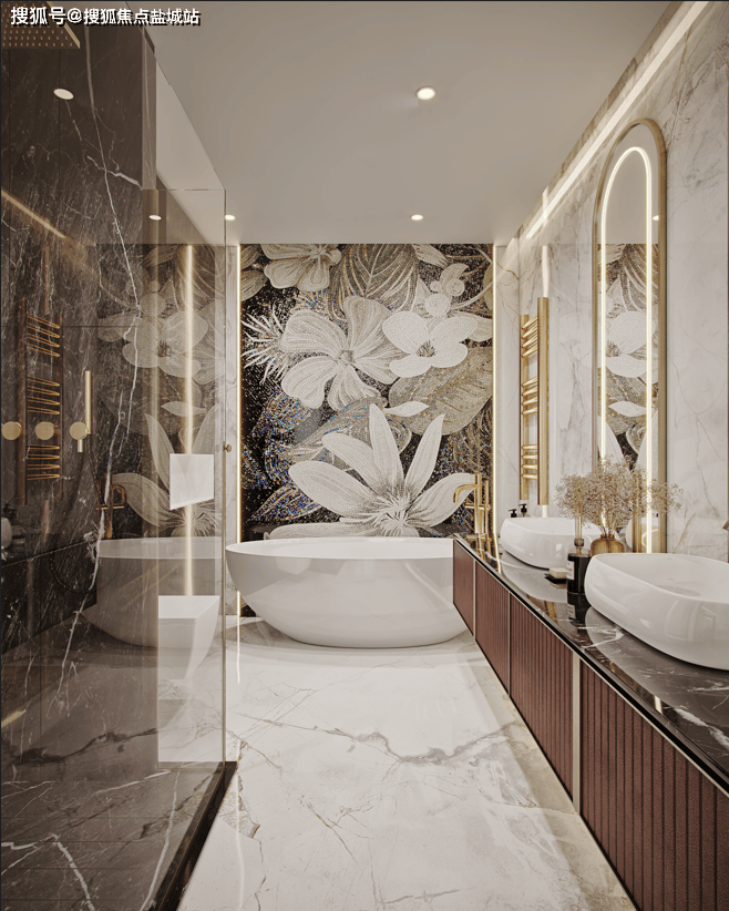 项目以奢装标准(6500元/㎡)交付,煤气入户,民用水电;配置华为智能生活,全屋中央空调、地暖、净水、新风系统;高配汉斯格雅、杜拉维特、西门子等一线品牌;精选纯天然石材,雕琢生活的每一寸空间。